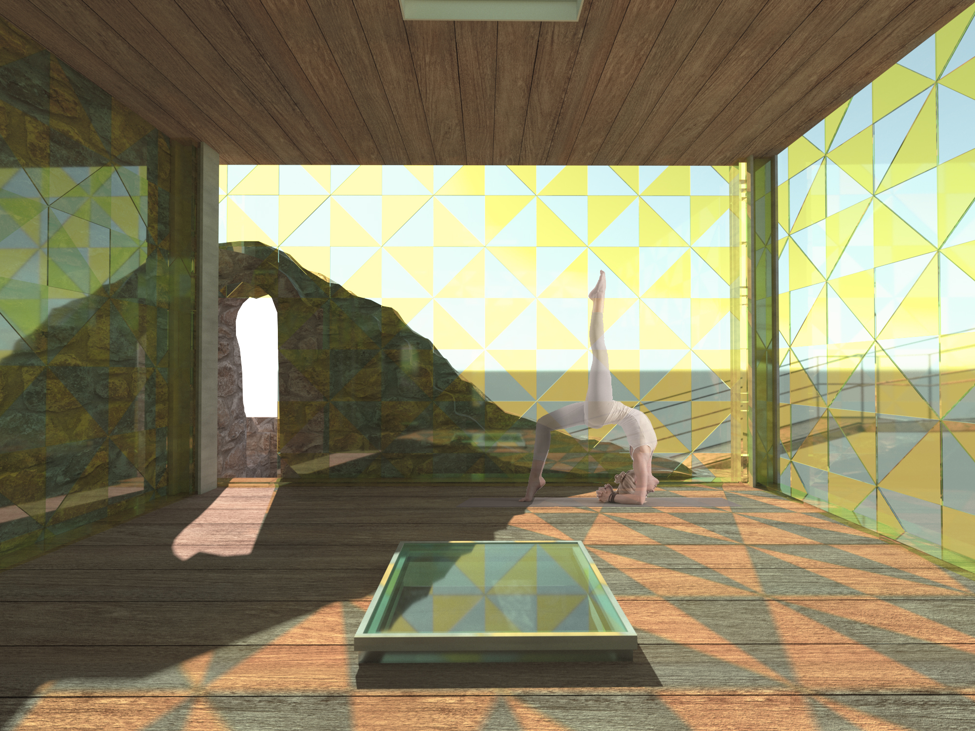 Queste cromie sono state integrate nella struttura vetrata della Torre Rinalda, spazio progettato per la meditazione e il benessere. La torre, oggi su tre livelli, si affaccia sul mare aperto, senza confini visivi, regalando una profonda sensazione di libertà.